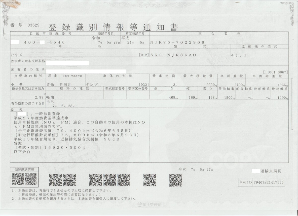 | 車検期日 | 抹消 |