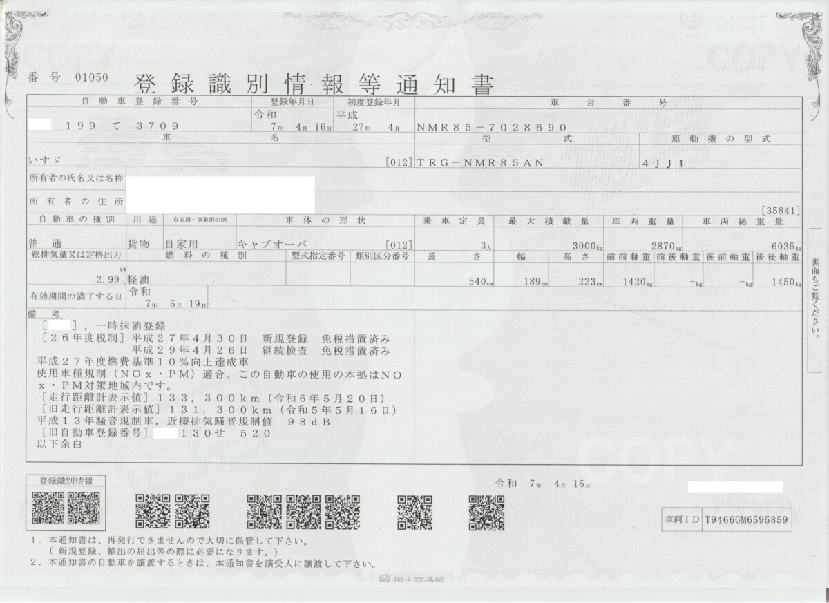 車検期日 | 抹消 |
